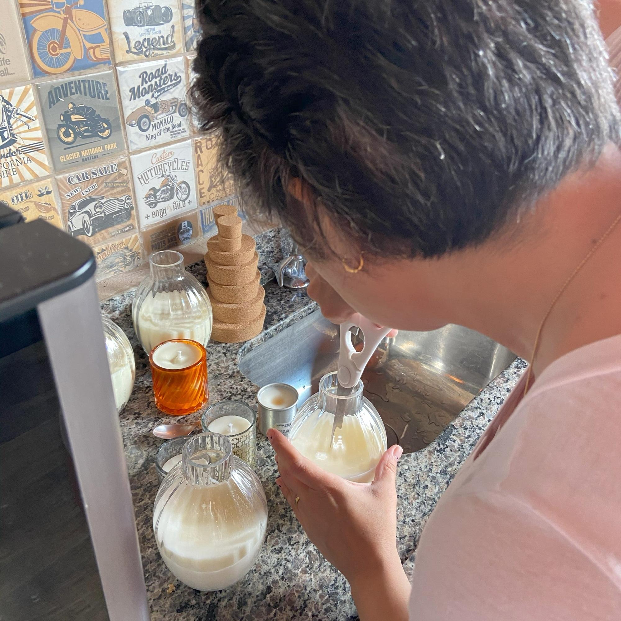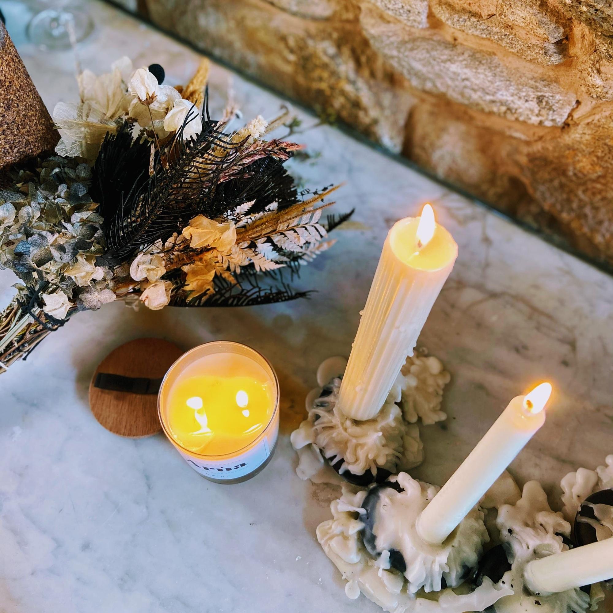 Hoje sigo à frente da Arúa unindo experiência técnica e sensibilidade criativa. Da escolha dos ingredientes ao design dos rótulos, do site às fotos, cuido de cada detalhe para que a marca seja uma extensão verdadeira daquilo que acredito. Para mim, velas não são apenas objetos decorativos: elas têm o poder de marcar memórias, trazer silêncio para dias cheios, acolher em momentos difíceis e celebrar em dias felizes.