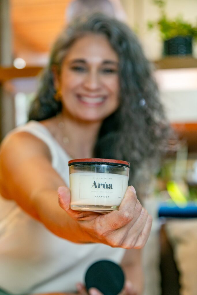 Minha jornada com a Arúa também é profundamente pessoal. Além de empreendedora, tenho mais de 10 anos de experiência com tecnologia e, nos últimos anos na área, vivi períodos extremamente intensos que culminaram em um burnout. Foi um momento difícil, mas também transformador: me obrigou a desacelerar, a olhar para dentro e a encontrar na criatividade e no fazer manual uma forma de terapia. As velas surgiram como esse respiro, um ritual que me reconectou comigo mesma e que, aos poucos, se transformou em propósito de vida.