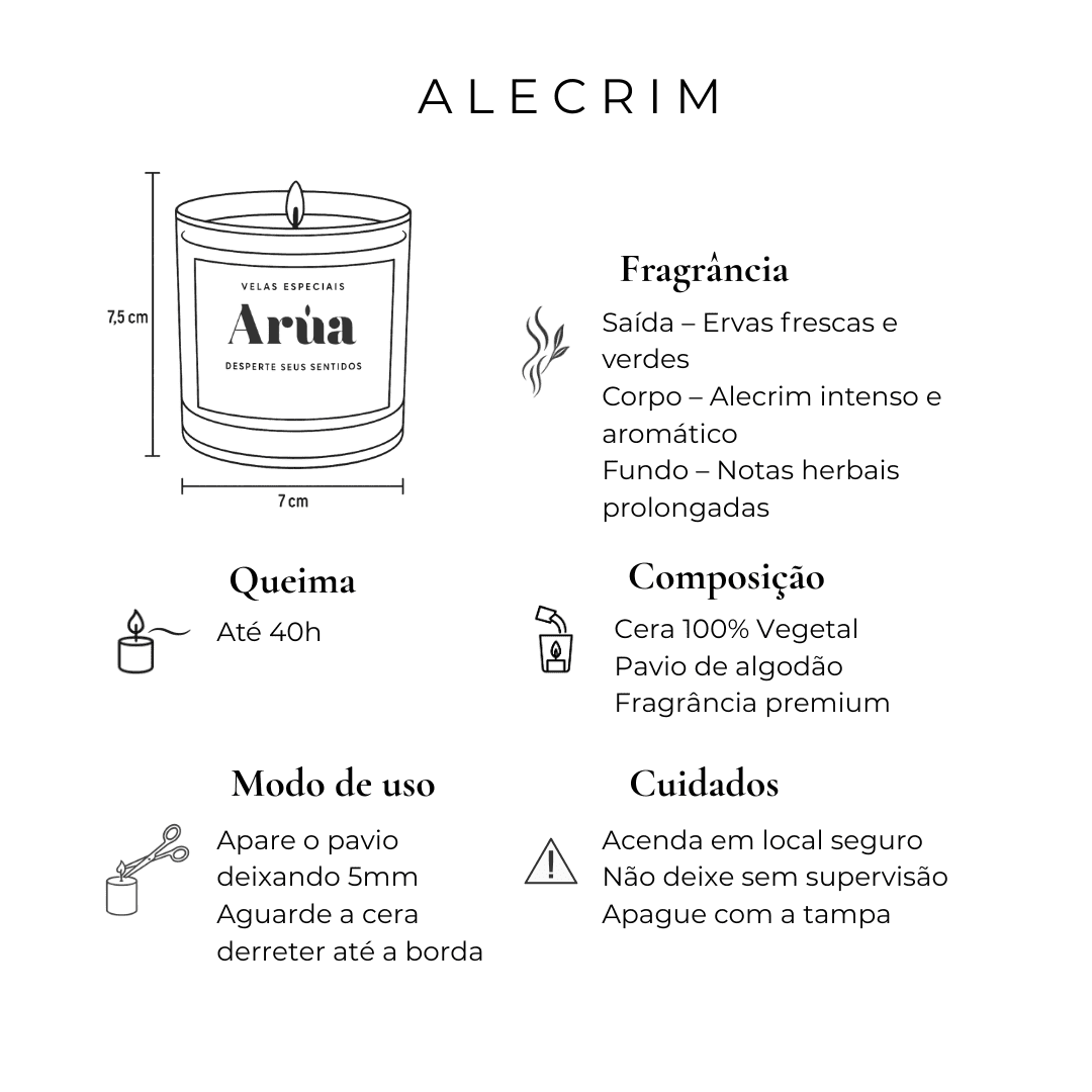 A Vela Aromática de Alecrim Arúa é feita com cera 100% vegetal e fragrância premium, criada para transformar qualquer ambiente com frescor herbal e elegante. Suas notas de saída trazem ervas verdes e frescas, evoluindo para um corpo de alecrim intenso e aromático, e finalizando com notas herbais prolongadas que permanecem no ar mesmo após apagar a chama.