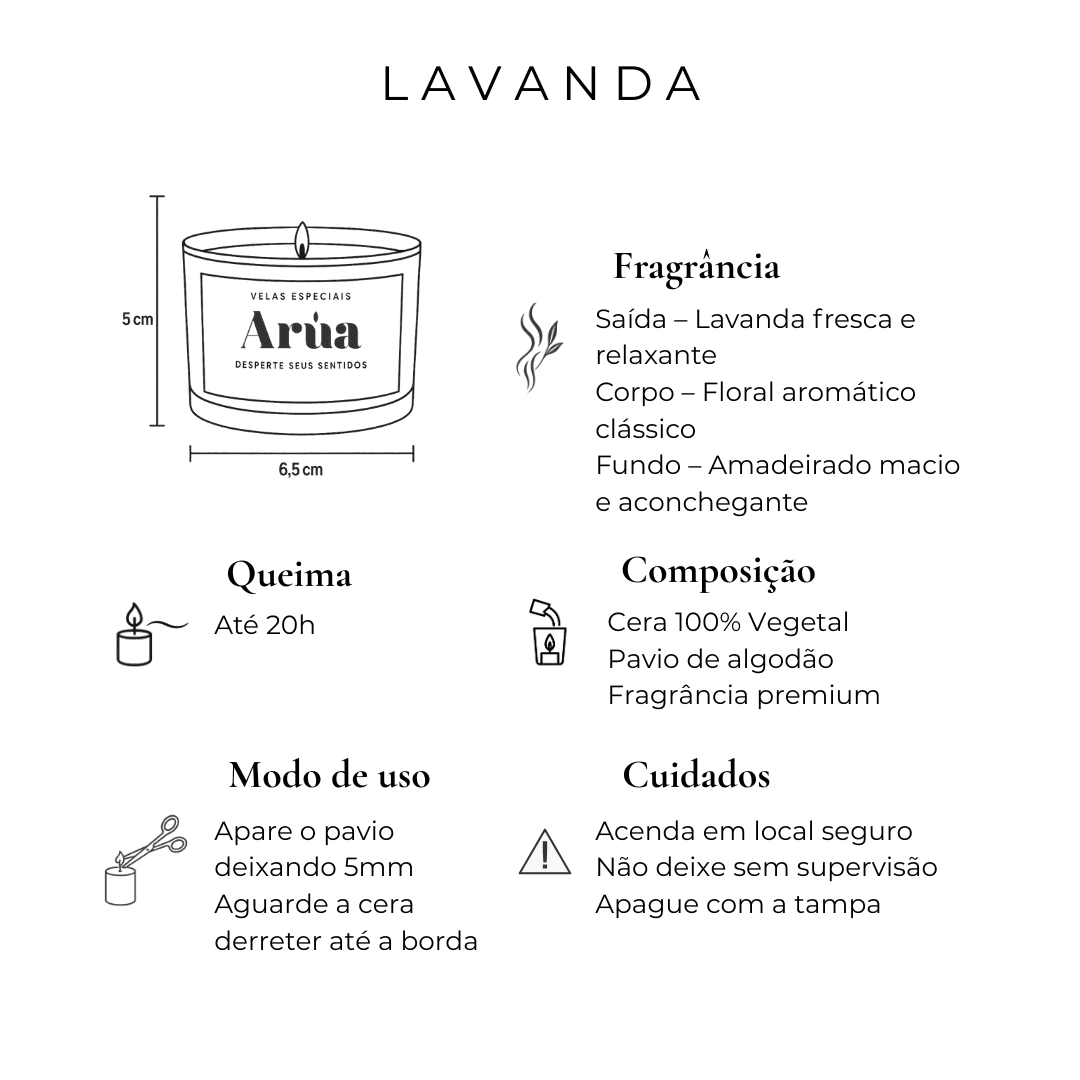 A Vela Aromática de Lavanda Arúa combina o clássico aroma de lavanda com a sofisticação do nosso acabamento minimalista. Feita com cera 100% vegetal e fragrância premium, entrega um ambiente calmo, acolhedor e elegante — sem pesar.