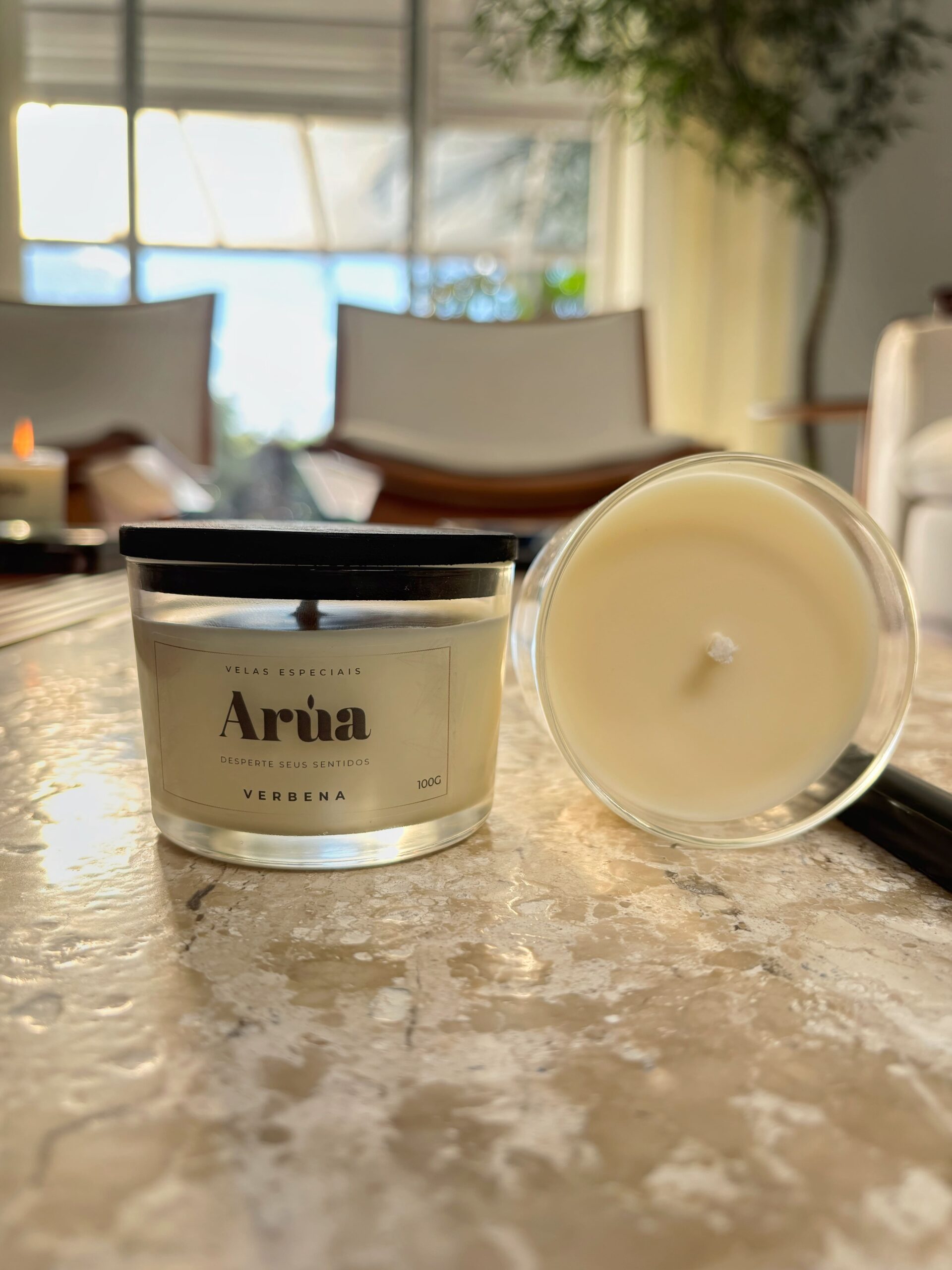 A Vela Aromática de Verbena Arúa é um convite ao frescor cítrico e vibrante. Produzida artesanalmente com cera 100% vegetal e fragrância premium, ela transforma o ambiente com leveza e vitalidade, perfeita para quem busca renovar a energia da casa com sofisticação.